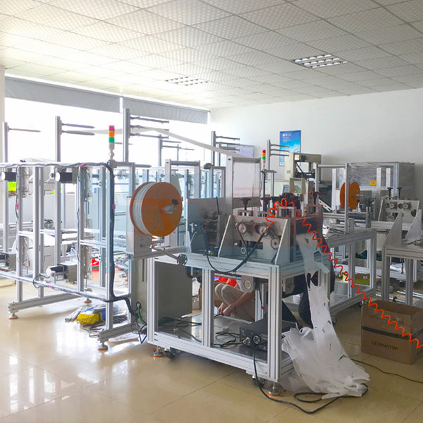 Work flow: manual winding of material and nose line, automatic folding of equipment, automatic welding and cutting, and delivery of mask.